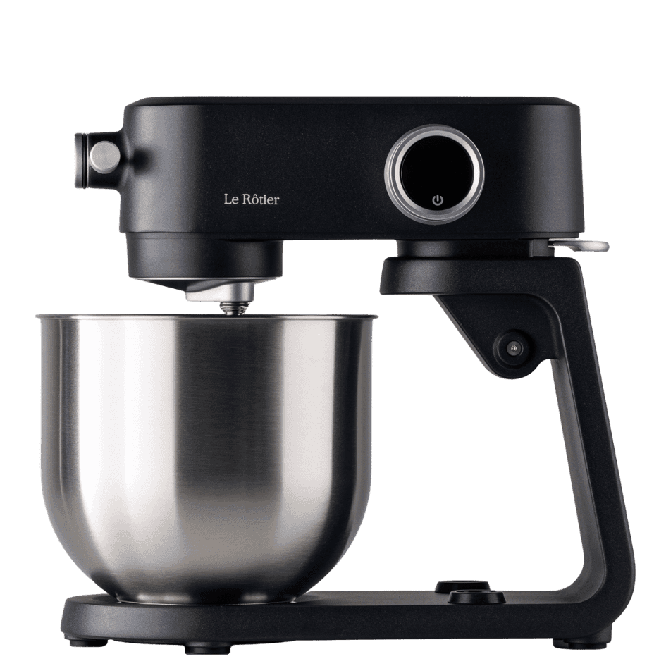 Le Rôtier har en kraftig DC-motor på 800 watt som tilsvarer rundt 1600 watt hos tradisjonelle AC-motorer. Dette gjør den i stand til å takle alle utfordringer på kjøkkenet, inkludert elting av større deigporsjoner på 2,5 kg. Når det kommer til utstyr får du med en massiv 7 liters blandebolle, en eltekrok, en ballongvisp og en flatvisp – alt i rustfritt stål som trygt kan vaskes i oppvaskmaskin.